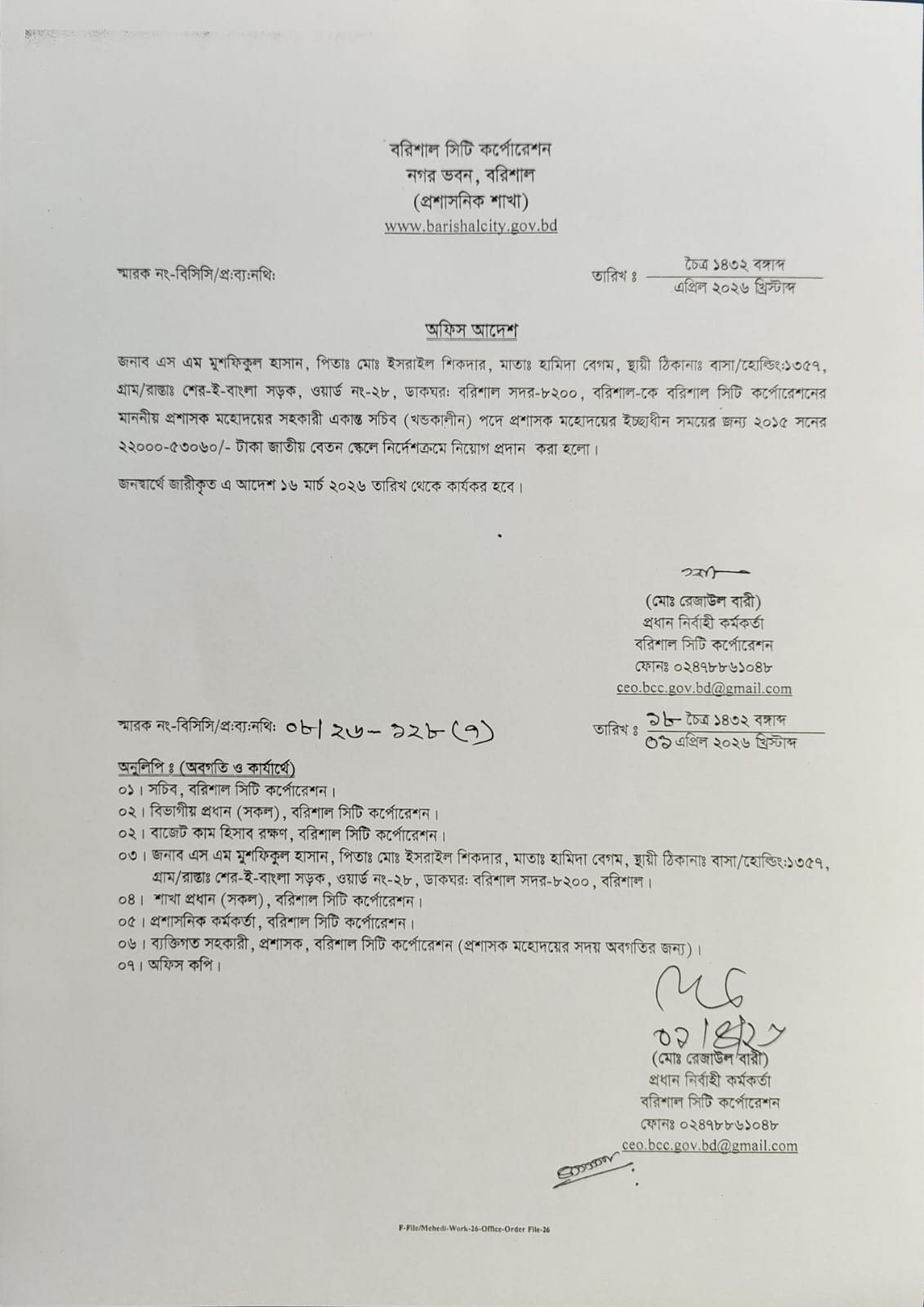 - বদলি/পদায়ন সংক্রান্ত