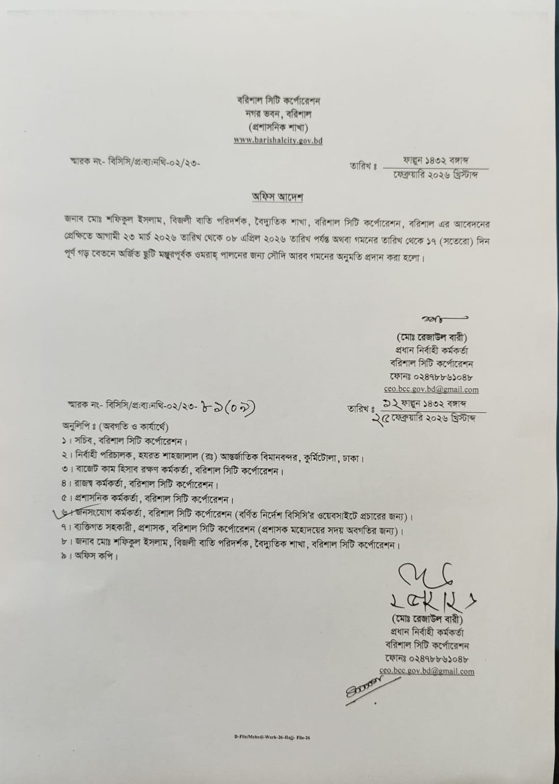 - বহিঃ বাংলাদেশ ছুটি মোঃ শফিকুল ইসলাম