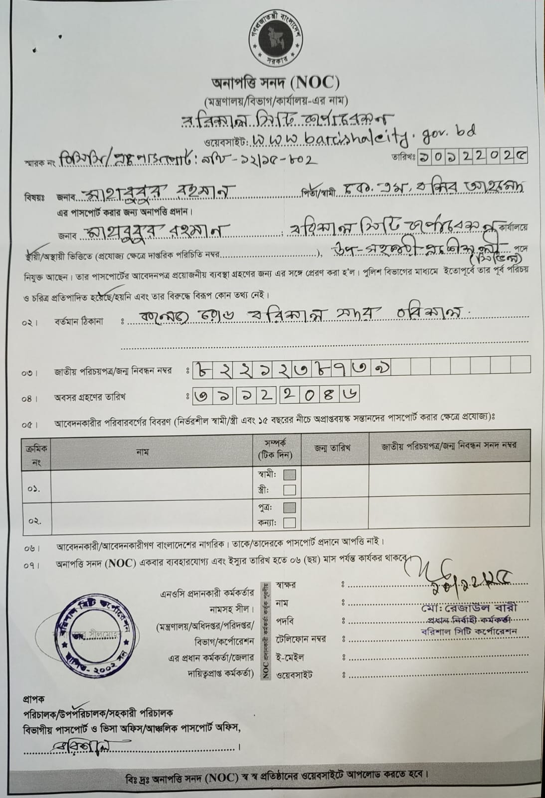 - NOC মাহাবুবুর রহমান